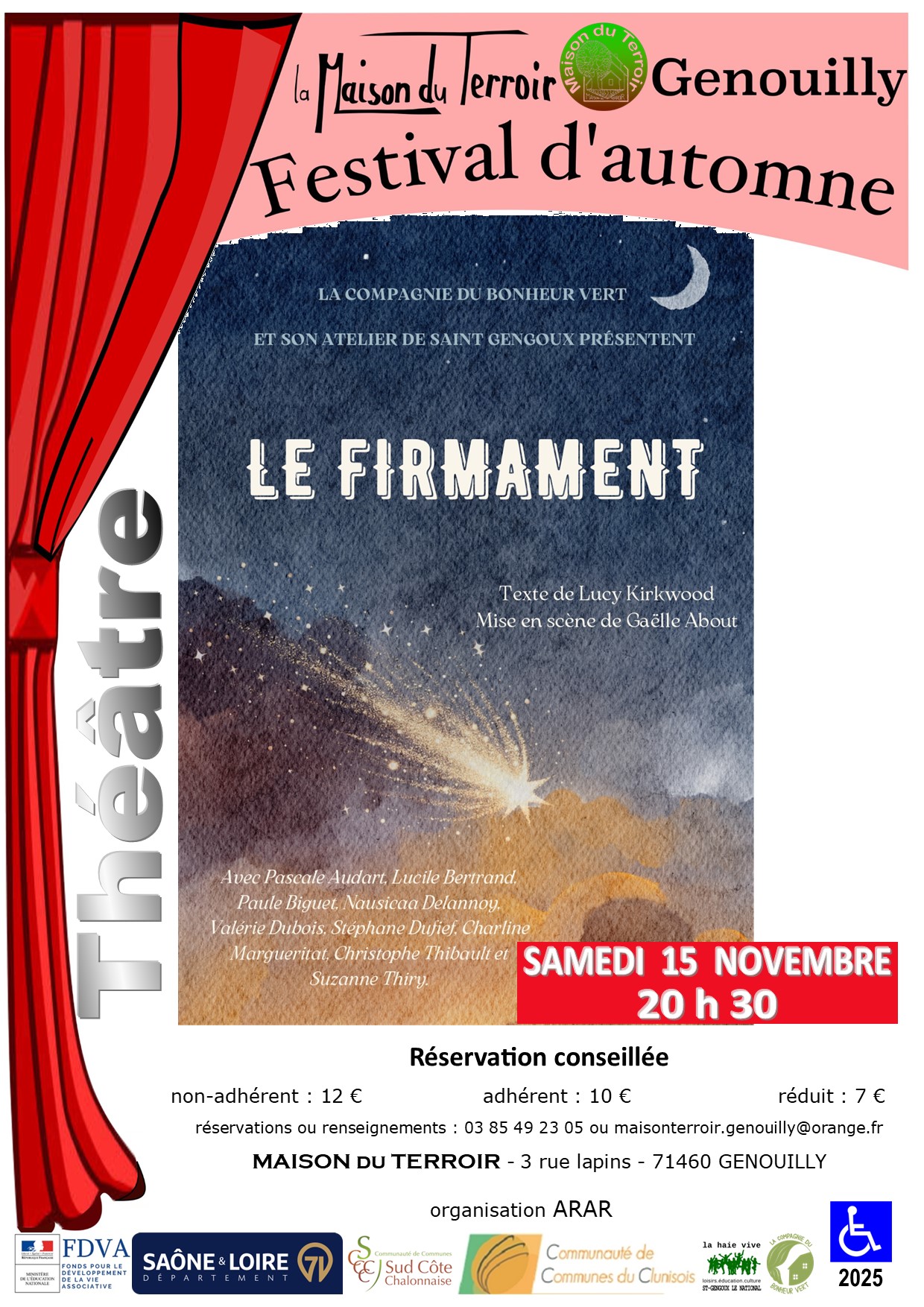 Plein Tarif : 12€ – Adhérent : 10€ – Réduit : 7€