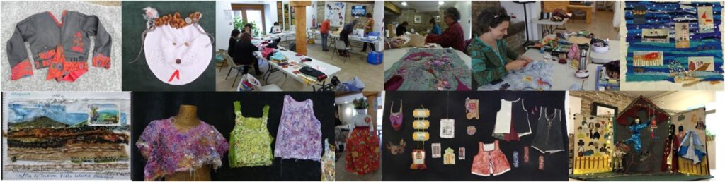 à partir de tissus et autres objets de récupération, Amélie propose des thèmes et guide les participantes dans la réalisation. Dans une délicieuse ambiance de camaraderie et de détente, elles mettent en commun leurs talents et laissent leur habileté rejoindre leur imagination, pour des pièces uniques, parfois espiègles, toujours étonnantes. Les débutantes sont aussi les bienvenues.